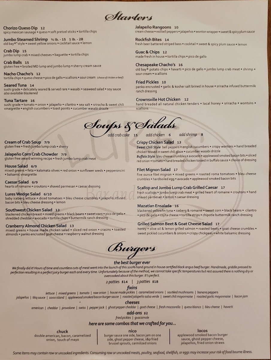 Welcome to Lures Bar and Grille, where the vibrant atmosphere is matched only by a delightful menu that promises to tantalize your taste buds. Nestled at 1397 Generals Hwy, Crownsville, MD, Lures is a culinary gem boasting an impressive array of dishes, each more inviting than the last.